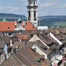 Découvre l'église catholique St-Nicolas avec Fredy Meier et Christof Kaiser. Tu apprendras des choses passionnantes sur les vénérables cloches de l'église et tu pourras profiter de la vue sur Frauenfeld depuis le balcon du clocher.