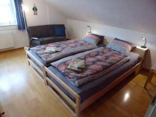 À Kreuzlingen, une agréable maison individuelle abrite le B & B 22 - Zimmer & Zmorge. À l'étage supérieur, deux chambres doubles peuvent accueillir jusqu'à quatre personnes. À l'étage réservé exclusivement aux hôtes se trouve, outre une salle de bains, un petit coin salon où est servi un copieux petit-déjeuner. Le pain, les yaourts, la confiture et une partie des autres produits sont faits maison, frais et délicieux. Dans la mesure du possible, l'accent est mis sur la région et la saison. Les chambres peuvent également être réservées en tant que chambres individuelles ou sans petit-déjeuner. Les familles avec enfants sont les bienvenues. Le jardin avec deux places assises, un barbecue, un hamac et une table de ping-pong peut être utilisé.