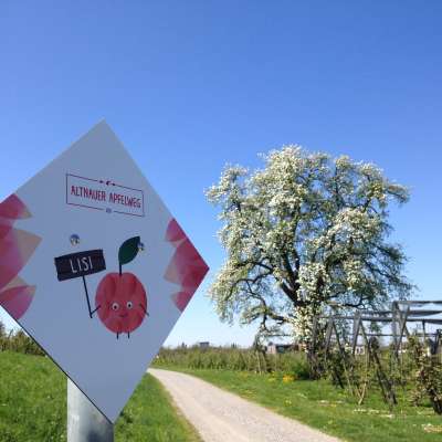 Légèrement surélevé et situé directement au bord du lac de Constance, Altnau compte plus de pommiers que d'habitants - et offre une vue magnifique sur le lac de Constance. Le sentier des pommes montre à quel point la culture fruitière est importante pour la culture du village depuis des générations. Des panneaux d'information nouvellement conçus, avec des devinettes sur les variétés de pommes, des blagues et des questions, transmettent des informations intéressantes sur la région de culture des pommes et le fruit aux joues rouges. Les trois mascottes de la pomme, Fredi, Lisi et Emma, s'adressent aux enfants à hauteur des yeux depuis les panneaux et présentent des offres de participation amusantes.