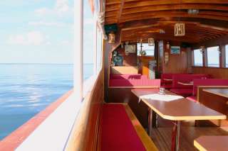 L'Arbor Felix est un bateau ancien restauré à l'identique, dont le port d'attache est Arbon, sur le lac de Constance. Il peut accueillir jusqu'à 30 personnes et navigue sur tout le lac - que ce soit pour des circuits, des excursions ou des événements privés. Le bateau accoste à différents endroits de la rive et permet ainsi des tours flexibles autour du lac de Constance, qui peuvent également être combinés avec la visite de curiosités ou de musées. Une offre gastronomique soigneusement composée et à caractère régional attend les passagers à bord - notamment les fameux "Fisch-Chnusperli", des apéritifs ou des menus à plusieurs plats à toute heure de la journée. L'Arbor Felix offre également un cadre idéal pour les mariages, les anniversaires, les fêtes ou les dégustations - en été comme en hiver. De mai à septembre, des croisières publiques sont organisées le dimanche après-midi. Elles permettent de découvrir le lac et le paysage sous une nouvelle perspective - accompagnées de boissons chaudes ou fraîches à bord.