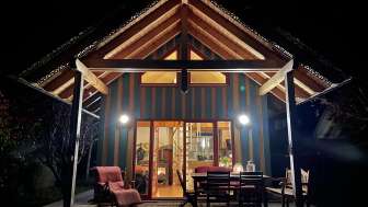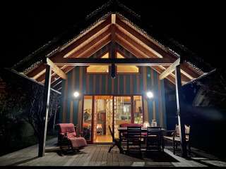 La maison de bain est divisée en deux étages. L'étage supérieur est utilisé pour dormir avec deux lits (un lit double et un lit simple), l'étage inférieur dispose d'une salle de bain avec douche et WC.