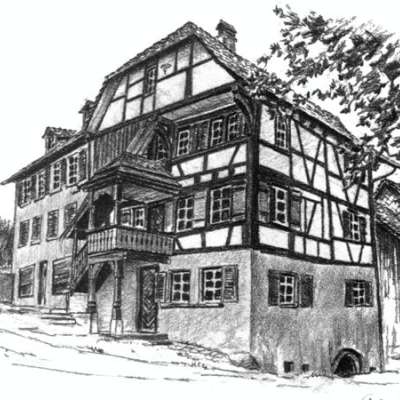 La maison "zur Baliere", dans laquelle se trouve la galerie, est un ancien bâtiment à colombages datant du 16ème siècle et était autrefois la maison d'habitation et de commerce de Hans Hoffmann, qui travaillait comme baliseur (balayeur d'épées) et armurier à Frauenfeld. Au musée historique du château de Frauenfeld, on peut encore admirer aujourd'hui des épées finement ciselées provenant de son atelier.