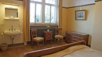 Le charme de la villa classée monument historique est convaincant : des meubles nostalgiques, des lavabos Art nouveau et des carreaux anciens créent l'ambiance correspondante. Le logement à Aadorf est conçu pour accueillir jusqu'à quatre personnes, un lit bébé et un lit d'enfant sont également disponibles. Un parc pour se reposer ou découvrir (adapté aux enfants), une bibliothèque ainsi qu'une boîte de flipper complètent l'offre. Pour bien commencer la journée, un petit-déjeuner exceptionnel est proposé. La région peut être découverte à pied ou à vélo. Une visite des villes et des musées environnants dans le triangle Winterthur-Frauenfeld-Wil vaut également la peine. Les chutes du Rhin, le lac de Constance ou le Toggenburg ne sont également qu'à 30 minutes en voiture, 2 places de parking gratuites sont à disposition. La gare n'est qu'à 3 minutes à pied, avec de bonnes liaisons de transports publics en direction de Zurich ou de St-Gall.