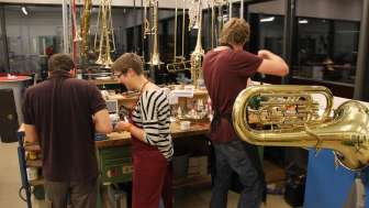 Dans l'atelier "en verre", on peut voir de près comment sont fabriqués les cuivres ou les clarinettes. Même les non-musiciens peuvent se plonger dans l'univers d'une tradition artisanale séculaire et s'étonner de la manière dont les instruments sont créés. Ceux qui le souhaitent peuvent également mettre la main à la pâte et s'essayer à la fabrication d'instruments. Dans l'atelier, il est possible de regarder par-dessus l'épaule du facteur d'instruments et de découvrir ainsi quelques secrets de la fabrication d'instruments. Le tout sera soutenu par des supports multimédias. Des ateliers pour musiciens sur le thème de l'entretien des instruments ou des ateliers d'embouchure sont également organisés dans les locaux.