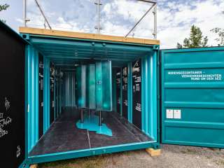 Le corps lumineux tridimensionnel du lac de Constance, qui se trouve à l'intérieur du conteneur, donne un aperçu passionnant de l'histoire des transports à Romanshorn, Bregenz, Lindau, Friedrichshafen et Kreuzlingen/Constance par le biais de différents trous d'observation. La montée praticable sur le toit du conteneur permet d'avoir une vue panoramique réelle sur les différents acteurs. Les visiteurs peuvent en outre laisser leurs traces sur un mur de craie spécial.