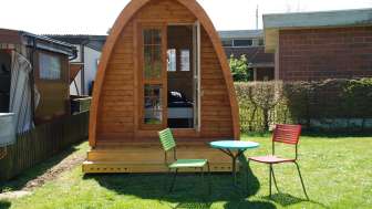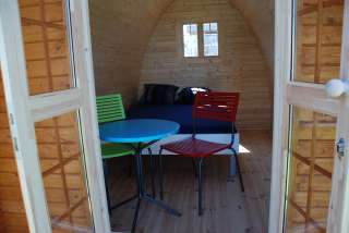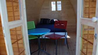 Une petite maison en bois, appelée "pod", est désormais proposée. L'aménagement comprend un lit avec un matelas de 1,40 mètre de large pour deux personnes et une petite table avec deux chaises. La maisonnette est destinée à remplacer la tente pour les cyclotouristes qui ne veulent pas emporter trop de bagages - un sac de couchage suffit. Les chiens sont autorisés sur le camping.