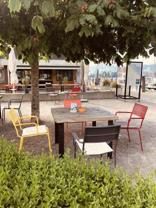 Des boissons rafraîchissantes, des vins de choix, une bière fraîche, quelque chose de pétillant sans alcool ! Ou plutôt du café ou du thé ? Au DOCKeins, on trouve de quoi étancher sa soif. De plus, de délicieux petits plats attendent les clients : Croustillants de poisson suisse, différents petits bateaux en épeautre faits maison ou un apéro-plat. Des desserts, des glaces ou des friandises pour les petits hôtes sont bien entendu également proposés. Si jamais il n'y a pas de place libre, l'offre de nourriture et de boissons est également disponible "to go" - et bien sûr dans de la vaisselle écologique jetable en bioplastique compostable ou en résidus de la production de sucre.