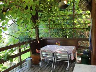 La véranda couverte offre une vue magnifique sur le paysage fluvial du Sittertal. Sur la véranda se trouvent un banc d'angle et une table pour se détendre par beau temps. Le barbecue au charbon de bois peut également être utilisé.