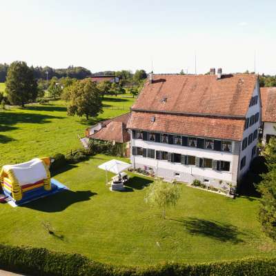 A Langrickenbach, au-dessus du lac de Constance, se trouve un véritable bijou pour des vacances stylées et des fêtes extravagantes : le Schlössli Herrenhof. Un immense jardin, une cave historique pour faire la fête, une salle de jeux, des chambres doubles soignées et beaucoup, beaucoup d'espace invitent les hôtes à se faire plaisir.