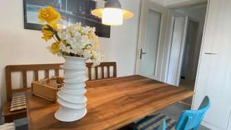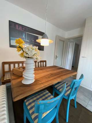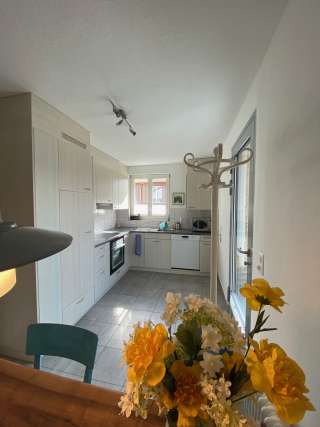 Les hôtes sont deux personnes pleines d'humour, ouvertes et serviables qui vivent dans le même immeuble. L'entrée séparée par un escalier extérieur en colimaçon mène directement à la cuisine-séjour confortable et bien équipée. Là, un four à micro-ondes ainsi qu'une machine à café à capsules sont à disposition avec un choix de capsules par jour de nuitée. Il y a également un choix d'épices, de thé, de vinaigre et d'huile.