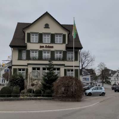 L'agréable salle de restaurant avec ses petits encorbellements de l'auberge zum Ochsen à Amriswil peut accueillir environ 50 personnes. Les belles journées d'été, la terrasse invite à la détente.