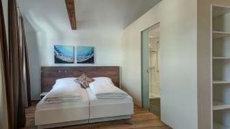 La chambre familiale Schlossblick dispose d'une niche pour enfants (140x140cm) et convient aux enfants jusqu'à 8 ans.