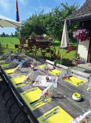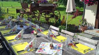 L'auberge Dornhof est située à Steinebrunn, avec vue sur Romanshorn et le lac de Constance. Dans la salle de restaurant confortablement aménagée ou dans le jardin, les hôtes dégustent une offre petite mais raffinée de la cuisine de saison ou un délicieux dessert. Une carte des boissons avec de nombreuses spécialités complète l'offre. Que ce soit après une promenade, une longue randonnée à vélo ou tout simplement pour le plaisir, le Gasthof Dornhof est un lieu où il fait bon se détendre. Une boutique de cadeaux intégrée dans la salle de restaurant assure une ambiance et une décoration saisonnières sans cesse renouvelées dans l'établissement. De nombreuses fleurs ainsi que des animaux autour de la maison et une petite aire de jeux font le bonheur des petits et des grands. Les deux chambres d'hôtes confortablement aménagées avec salle de bain commune complètent l'offre. Les hôtes profitent ici du calme dans le village inférieur de Steinebrunn et de l'hospitalité familiale. Idéal pour un court séjour ou pour les visiteurs de passage.