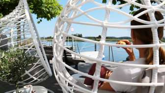 Dans le café du lac de Gottlieber, qui abrite une boutique de la manufacture, il est possible d'acheter toutes les spécialités de Gottlieber, comme les bricelets, les amandes au cacao et le chocolat. Les visiteurs passent des moments agréables dans une belle ambiance sur la magnifique terrasse du lac en dégustant une bière fraîche, du champagne ou un bon verre de vin. Mais les jours brumeux d'automne et d'hiver, les visiteurs peuvent également laisser leur âme vagabonder et observer l'eau coulante du Seerhein en dégustant une tasse de café chaude et parfumée.