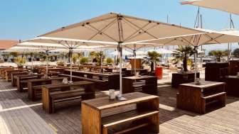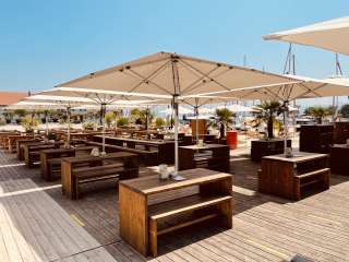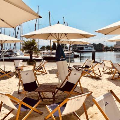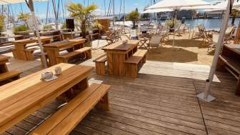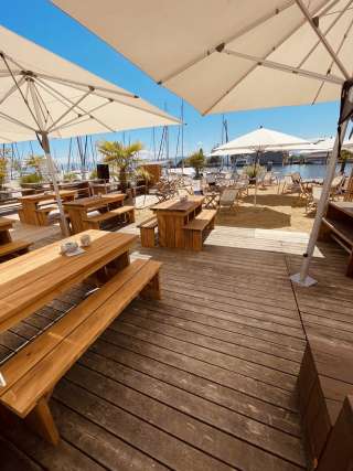 Directement au port des ferries de Romanshorn, les clients peuvent observer les bateaux qui arrivent dans le lounge du port, assis sur l'une des confortables chaises de plage, et profiter par-dessus le marché d'une vue grandiose sur les chaînes de montagnes de l'Alpstein. D'avril à septembre, on peut y savourer une boisson fraîche et se détendre dans le sable de la plage, dans un lounge confortable ou sur l'un des 200 autres sièges élégants. Côté gastronomie, les hôtes sont gâtés par les plats régionaux fraîchement préparés directement sur le gril.