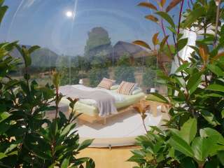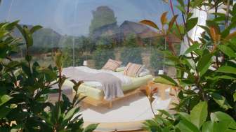 Le magasin de la ferme vend des produits agricoles régionaux et ses propres fruits. Le café offre aux hôtes un cadre formidable pour une petite pause. Les hôtes peuvent passer la nuit dans l'hôtel à bulles, le lit à baldaquin.