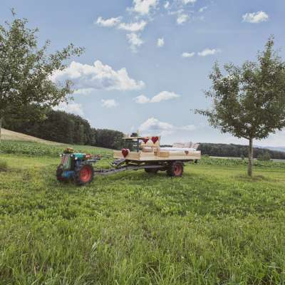 Le monoaxe avec lit double monté peut être garé pendant les chaudes nuits d'été sous le pommier préféré de la ferme Hagschnurer à Hüttwilen. Dans cet endroit exceptionnel en plein air, avec rien d'autre que le pommier et le ciel étoilé au-dessus de soi, on découvre les senteurs et les couleurs de la nature thurgovienne sans filtre et de tout près. Même une pluie légère ou un temps incertain ne gâcheront pas cette expérience particulière. Il est désormais possible de tendre une bâche transparente sur le lit à baldaquin. La Schüür dispose également d'un hébergement d'urgence pour les hôtes.