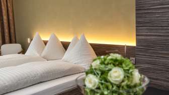 L'hôtel propose différentes catégories de chambres, de la chambre double normale à la chambre Grand Lit en passant par les chambres familiales pouvant accueillir jusqu'à quatre personnes. Les 42 chambres à l'équipement moderne sont toutes orientées vers le sud et l'ouest. Certaines de ces chambres disposent d'un balcon privé ou sont équipées d'un petit coin salon privé au rez-de-chaussée. Au restaurant ou sur la terrasse ensoleillée, les hôtes savourent des heures de plaisir. L'équipe de cuisine travaille exclusivement avec des produits régionaux.