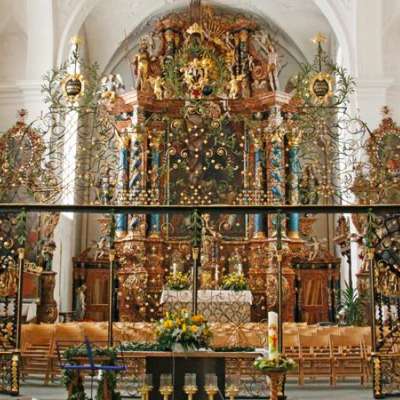 Selon la légende, le monastère a été fondé par la fille du roi d'Angleterre Édouard Ier. L'église du monastère St. Remigius est un exemple remarquable de l'architecture baroque du Vorarlberg et possède une forme de tour bien articulée en moellons de grès.