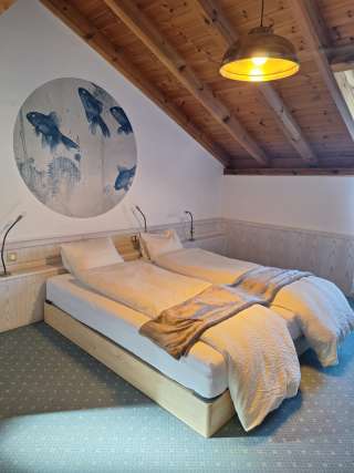 Le Landgasthof Aachbrüggli à Erlen est joliment aménagé avec l'amour du détail. La décoration ludique, le papier peint fleuri et le concentré d'énergie féminine des gérantes distillent charme et joie de vivre. Les sept chambres de l'hôtel reflètent également cette ambiance et invitent à passer la nuit au cœur de la Thurgovie. Les hôtes sont servis chaque jour avec un petit-déjeuner régional, l'un des meilleurs cafés baristas de la région, des gâteaux frais quotidiens et des spécialités au chocolat, comme le fameux "Schoggischümli". Des déjeuners frais et de saison, préparés avec des ingrédients de la région, ainsi que des boissons dans un petit bar raffiné sont proposés tous les mardis et vendredis. Chaque premier dimanche du mois, le petit-déjeuner se transforme en un délicieux brunch. Beaucoup de choses sont faites maison, comme les croissants ou le Huusmüesli, et le reste vient d'Erlen ou du village voisin. Les tentations de desserts sucrés peuvent être achetées au magasin et emportées à la maison. Pendant l'été, l'équipe d'Aachbrüggli gère en outre la roulotte du cirque avec du café en libre-service dans la pépinière bio Neubauer, en bordure du village.