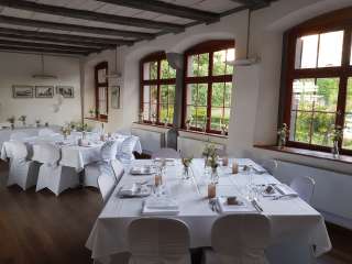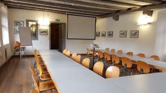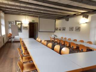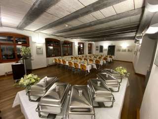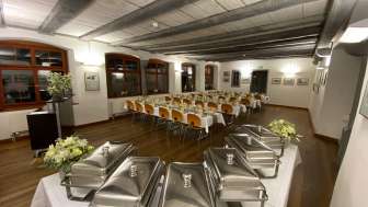 Dans la cave voûtée historique du musée ainsi que dans la cour intérieure adjacente avec son jardin baroque et la petite maison "Schniderbudig" qui s'y trouve, il est aujourd'hui possible de faire la fête et de se réunir. Il y a plus de 400 ans, la Schniderbudig était une maison de toile pour le commerce de la toile. Aujourd'hui, elle est disponible pour des événements et propose du mobilier pour jusqu'à 70 personnes ainsi qu'une cuisine professionnelle.