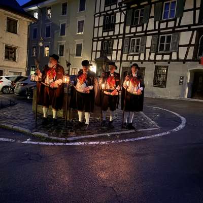 Comme autrefois, les silhouettes des veilleurs de nuit sont encore visibles aujourd'hui à Bischofszell. La veille de la nouvelle lune, ils empruntent l'itinéraire original à travers les ruelles sombres.