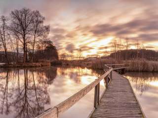 La vallée du Seebach se compose de trois petits lacs : le Hüttwilersee, le Nussbaumersee et le Hasensee sont ici très proches les uns des autres. La vallée est un îlot de biodiversité thurgovien. Il n'en a pas toujours été ainsi. L'assèchement des rives pendant la bataille des cultures de la Seconde Guerre mondiale a entraîné la perte d'une grande partie de l'habitat riche en espèces. La fondation Seebachtal pour la protection des trois lacs a mis fin à cette destruction. Après de vastes travaux de renaturation, des amphibiens menacés comme la rainette ou le triton alpestre sont revenus. Mais des libellules, des castors, des oiseaux aquatiques et d'autres plantes et animaux rares vivent également dans les lacs, les mares environnantes, les ruisseaux ou les bas-marais. Des sentiers sinueux passent sur des passerelles, devant des plateformes d'observation et le long des rives, invitant à la découverte et à la détente. Les accès au lac, pour la plupart gratuits, invitent à la baignade et permettent de faire des pauses et des grillades en dehors de la saison de baignade. L'itinéraire 918 sans obstacles est adapté aux fauteuils roulants et aux poussettes. Les lacustres se plaisaient déjà autour de l'îlot du lac Nussbaumersee. Le site est inscrit au patrimoine mondial de l'UNESCO. Un panneau sur le terrain avec un lien vidéo donne des explications.