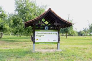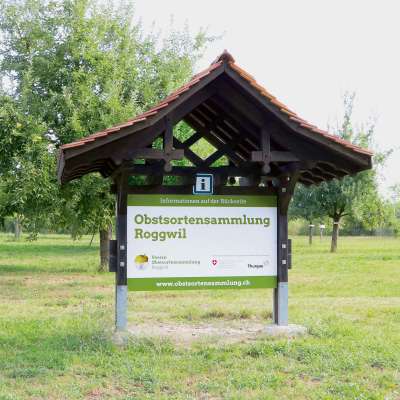 Le verger est une collection unique d'anciennes variétés de fruits. Près de 400 arbres à haute tige poussent sur une surface d'environ cinq hectares : pommiers, poiriers, cerisiers, pruniers, pruniers et noyers - chaque arbre est une variété différente. Le verger a été aménagé comme cela se faisait il y a encore quelques décennies dans toute la Haute-Thurgovie. L'association "Obstsortensammlung Roggwil" préserve ainsi non seulement la diversité des variétés fruitières, mais entretient également une tradition fruitière séculaire et le paysage.