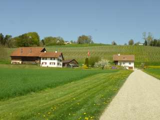 Le confortable bar à vin du Rebgut Jäger se trouve dans la région viticole de Thurgovie, après Hüttwilen. Le domaine viticole idyllique est situé au milieu de douces collines avec une vue magnifique sur le lac de Hüttwil et le panorama alpin.