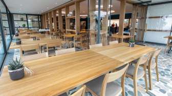 Le restaurant propose une cuisine régionale, de saison et fraîche. En été, les baigneurs de Wiedehorn peuvent également se restaurer à l'emporter. Le restaurant Seehuus séduit par son aménagement intérieur stylé et son architecture moderne. L'un des points forts est la baie vitrée panoramique sur toute la longueur, qui permet d'avoir une vue fantastique sur le lac de Constance. Lorsque les températures sont agréables, le vitrage réglable en hauteur peut être entièrement escamoté dans le sol. On obtient ainsi une terrasse spacieuse et protégée.