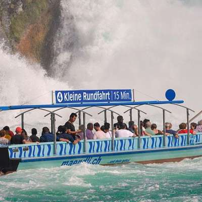Apprenez à connaître les chutes du Rhin de près - lors d'un tour en bateau dans le bassin des chutes du Rhin ou lors d'un trajet jusqu'au rocher central suivi d'une montée au rocher.