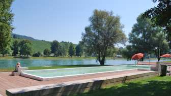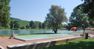 La piscine fluviale, située dans un cadre idyllique, se transforme régulièrement le soir en une grande piste de danse pour les visiteurs des concerts qui y sont organisés.