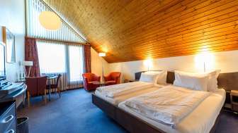Les chambres confortables avec balcon ont une vue sur le lac ou le parc. Les 18 chambres doubles claires et agréables sont équipées d'un bain/douche/WC, d'une télévision, d'un sèche-cheveux et d'une connexion WLAN gratuite.