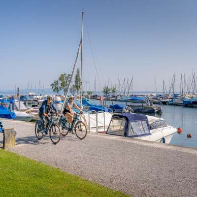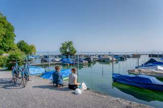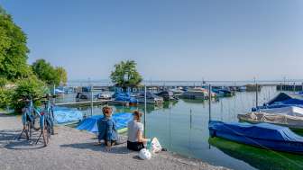 Il se passe beaucoup de choses au Seepark de Romanshorn : pendant que les touristes entrent dans le port avec leurs bateaux et que le capitaine du port leur indique le chemin, les familles flânent sur la promenade du lac. Entre les deux, on profite de la vue sur le lac de Constance et les prairies verdoyantes et parsemées de fleurs.