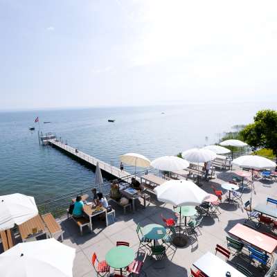 Situé directement au bord du magnifique lac de Constance, le Seerestaurant Buchhorn à Arbon est l'endroit idéal pour se détendre. On aimerait bien ne plus quitter la place panoramique légèrement surélevée de la terrasse. C'est un pur sentiment d'été.