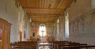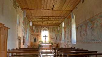 La chapelle Saint-Léonard aurait été construite à la place d'une chapelle encore plus ancienne au 10e ou 11e siècle. Depuis, elle a été peinte avec des fresques de différentes époques. Bien que des fenêtres brisées ultérieurement aient détruit une partie des fresques, la chapelle Leonhard est considérée comme une perle du gothique dans la région du lac de Constance.