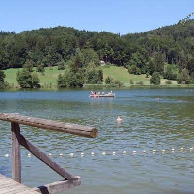 La piscine naturelle en plein air du Bichelsee, un étang à l'état naturel, est une destination très appréciée des cyclistes et des familles. Avec un diamètre de 300 mètres seulement, le Bichelsee entre clairement dans la catégorie "petit mais raffiné", mais l'expérience de la baignade est transfrontalière : la frontière cantonale avec Zurich passe juste derrière le kiosque.