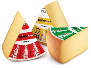 Le tilsit suisse est fabriqué selon une recette ancestrale, dans le respect de la nature, dans des fromageries familiales. Partant du traditionnel tilsit rouge au lait cru, l'assortiment s'est enrichi au fil des ans d'autres variétés de tilsit incomparables, à savoir le tilsit vert doux et le tilsit jaune crémeux.