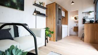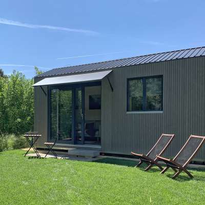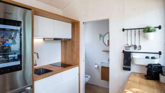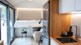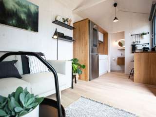 La Tiny House du camping Wagenhausen offre un contraste technique et élégant avec le séjour axé sur la nature dans la douce Thurgovie verdoyante et invite à la découverte des dernières possibilités du monde numérique.
