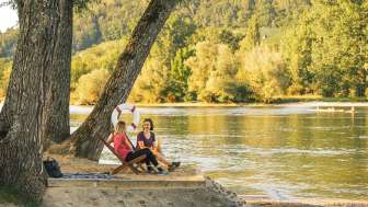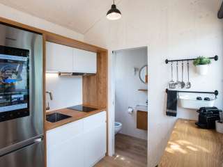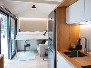 La Tiny House intelligente "écoute" les désirs de ses hôtes et offre de nombreuses possibilités : la clé de la chambre, par exemple, est envoyée sur le téléphone portable. Si l'on veut de la lumière, il suffit de le dire à voix haute. Si l'on veut regarder la télévision, on peut le faire de manière très moderne via une application sur la tablette de la maison, la liste de chansons Spotify personnelle peut être diffusée sur les haut-parleurs de la maisonnette et un grand écran sur le réfrigérateur devient un élément d'information pour les renseignements touristiques. Le camping est situé directement au bord du Rhin et constitue un point de départ idéal pour d'innombrables randonnées à pied ou à vélo le long de l'eau. L'auberge de campagne convainc par sa bonne cuisine et sa situation attrayante pour les amoureux de la nature font de chaque séjour des vacances merveilleuses. Lors des chaudes journées d'été, la plage du camping invite à plonger dans l'eau fraîche.