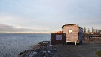 Un sauna au bord du lac ! Fonctionnant de manière autonome, il permet de se rafraîchir dans le lac. Le chariot-sauna se trouve dans des piscines en plein air idylliques au bord du lac de Constance et peut être réservé en privé par tous les amateurs de sauna.